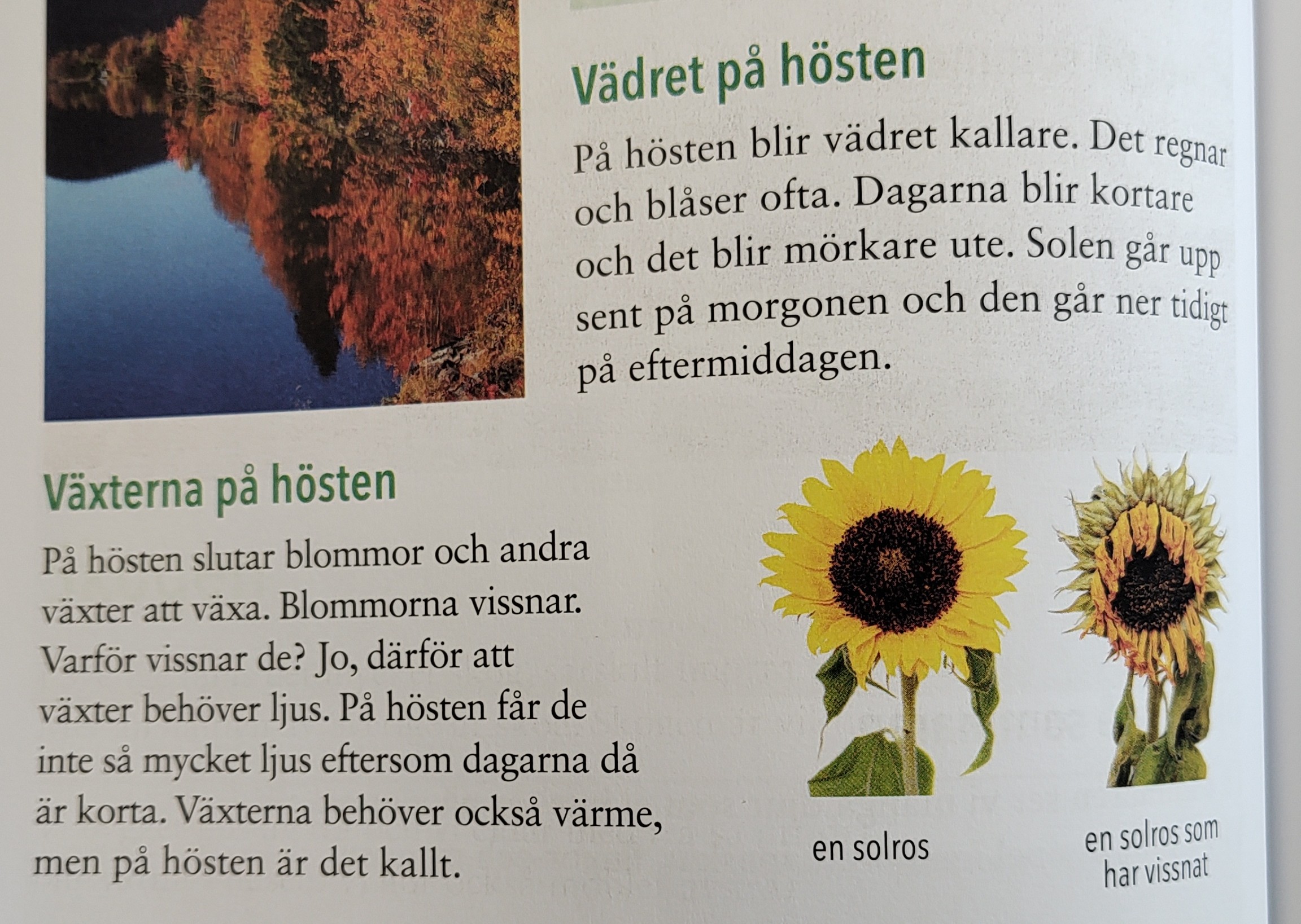 - Diktamen nästa vecka är de två första delarna av texten "Hösten".