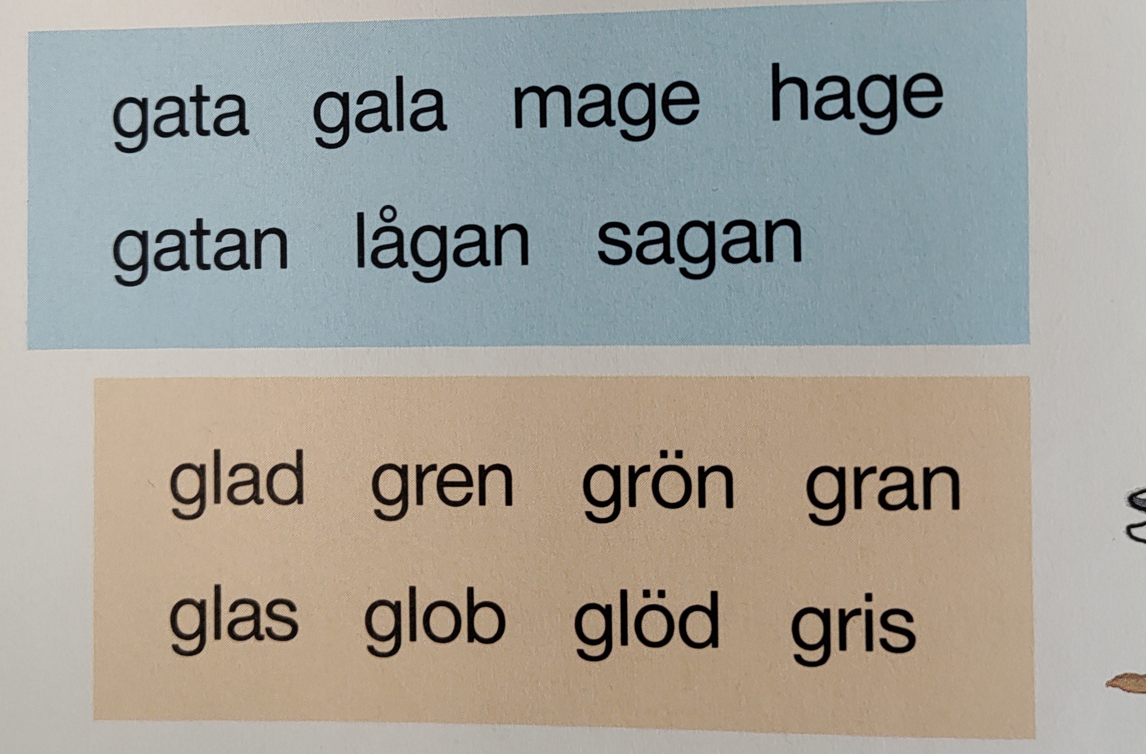 - Vi gör en läsuppgift tillsammans. Vi tränar läsa och uttala. Vi pratar om svåra ord.